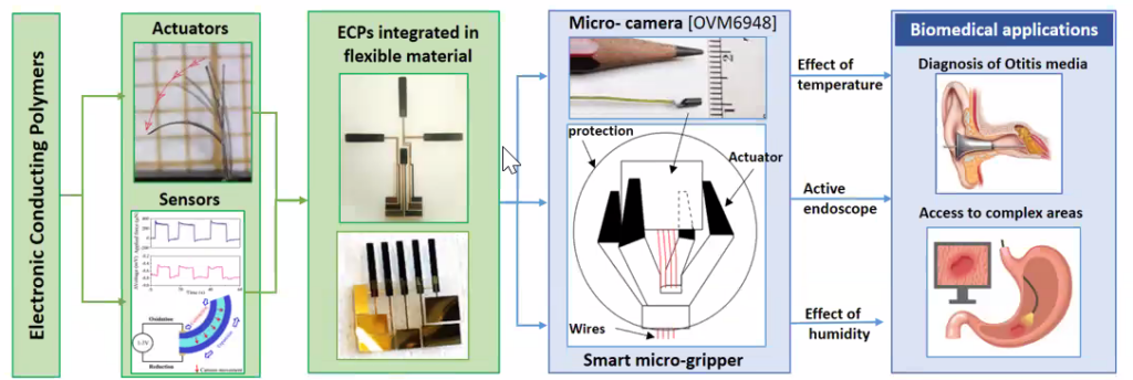 Zakres 24-miesięcznej współpracy obejmuje połączenie kompetencji zespołów Politechniki Poznańskiej i Université Polytechnique Hauts-de- France, w celu opracowania metodologii i przeprowadzenia badań numerycznych związanych z badaniem endoskopowym (bronchoskopowym) z wykorzystaniem innowacyjnego, elastycznego, aktywnego endoskopu bazującego na przewodzących polimerach. Projekt ma na celu osiągnięcie trzech kluczowych celów. Po pierwsze, ma na celu zaproponowanie mikrochwytaka, składającego się z kilku siłowników na bazie ECP, do chwytania i manewrowania mikrokamerą. Po drugie, ma na celu dostarczenie kompleksowych badań i analiz tych siłowników w praktycznych zastosowaniach, skupiając się na ich interakcji z płynnymi środowiskami podobnymi do tych w ludzkim ciele (np. roztwór soli fizjologicznej, biomateriały, media do hodowli komórek) poprzez symulacje numeryczne. Po trzecie, ma na celu integrację tego mikro-chwytaka, opartego na siłownikach ECP, z endoskopem.